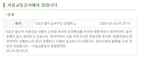 공사는 사고 직후 현장대응팀을 투입해 복구 작업을 하고 방화∼화곡 구간의 운행을 일시 중단했습니다.