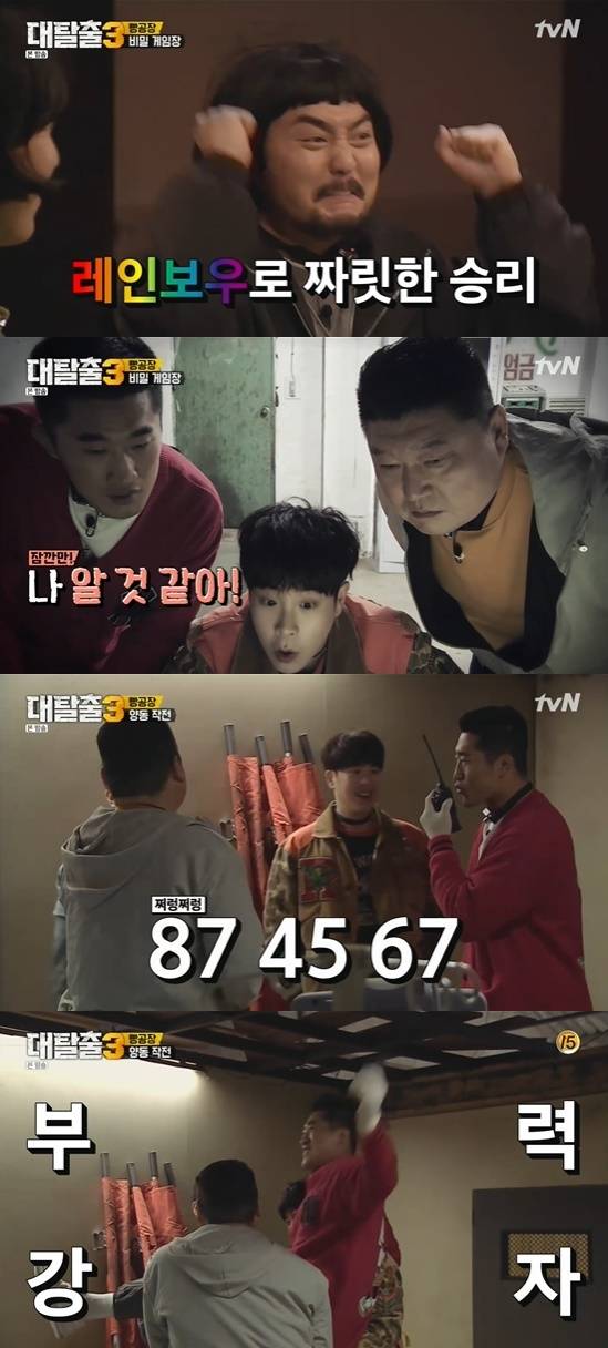 '대탈출3' 김동현의 활약으로 멤버들이 짜릿한 승리를 맛보았다.