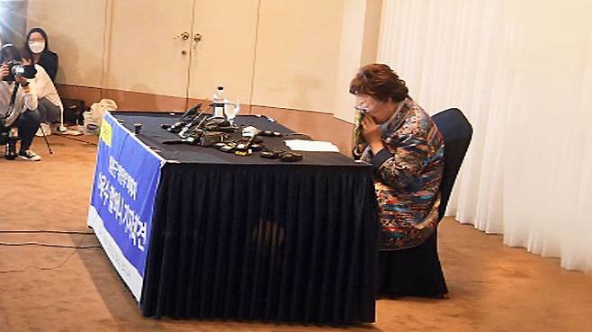 휠체어를 타고 부축을 받으며 회견장에 들어선 이용수 할머니는 1시간 동안 격정적인 목소리로 기자회견을 이어갔습니다.