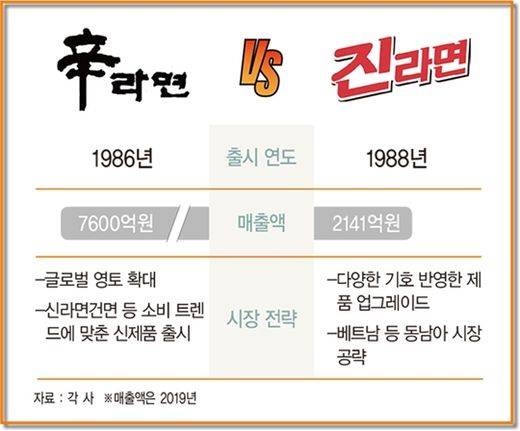영화 ‘기생충’의 오스카 수상으로 세계 각지에서 ‘짜파구리’가 인기를 끌면서 짜파게티와 너구리의 매출이 급증한 데 따른 결과다. 신종 코로나바이러스 감염증(코로나19) 사태로 ‘집콕족’이 늘어난 것도 라면 매출 증가의 요인이 됐다. 신라면은 30년째 국내 라면 브랜드 점유율 1위를 지키고 있다.