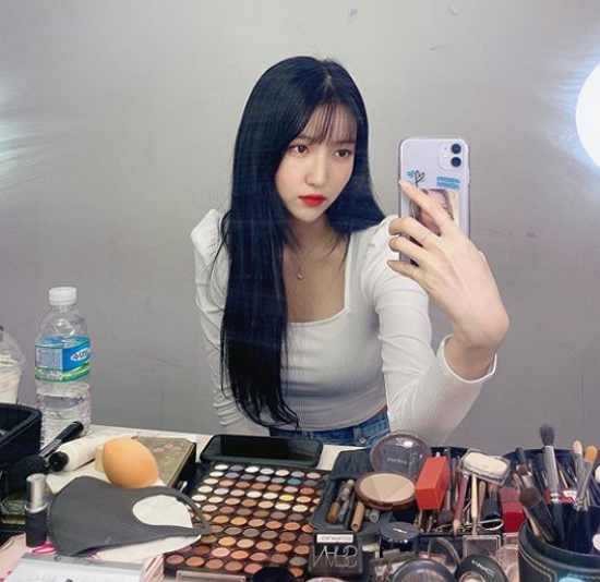 26일 소원은 여자친구 공식 인스타그램에 카메라 이모티콘과 셀카 2장을 올렸다. 게재된 사진에는 메이크업 방에서 거울 셀카를 찍고 있는 소원의 모습이 담겼다.