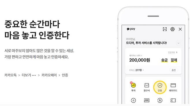 또한 카카오페이 인증은 카카오계열사와의 연계를 통한 사업 확장성이 돋보인다. 카카오페이증권을 비롯해 카카오뱅크 등 카카오 내 금융사들이 요구하는 전자서명과의 연계를 기대할 수 있다. 여기에 최근 카카오페이는 행정·공공기관 전자우편·중요문서를 카카오톡으로 간편하게 수신·열람할 수 있는 서비스를 제공하며 편의성을 높이겠다는 전략을 구사하고 있다.