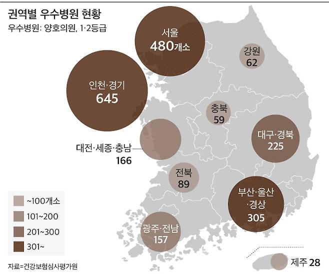 천식 양호의원과 만성폐쇄성폐질환 의료기관 1·2등급을 받은 '우수병원'은 전국 2216개소다. 우수병원은 권역별로 고르게 분포해있다.