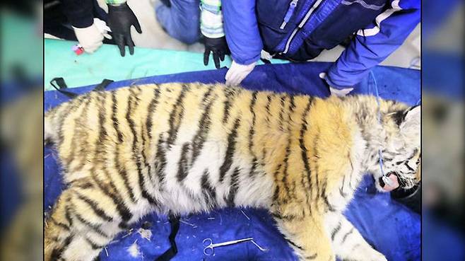 호랑이는 현재 재활 훈련소에서 건강을 회복하고 있다고 하는데요, 전문가들은 새끼 호랑이가 사람 손에 불법적으로 사육되다가 탈출했거나 버려졌을 가능성에 대해서도 조사를 하고 있습니다.