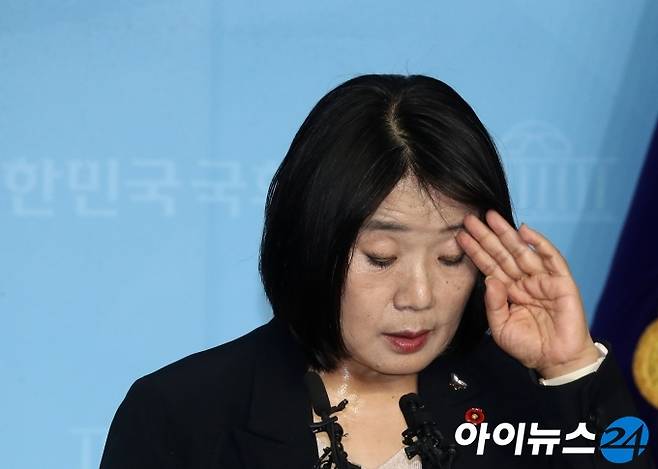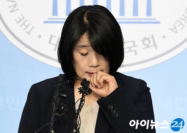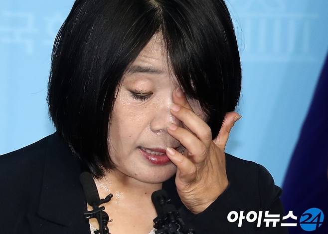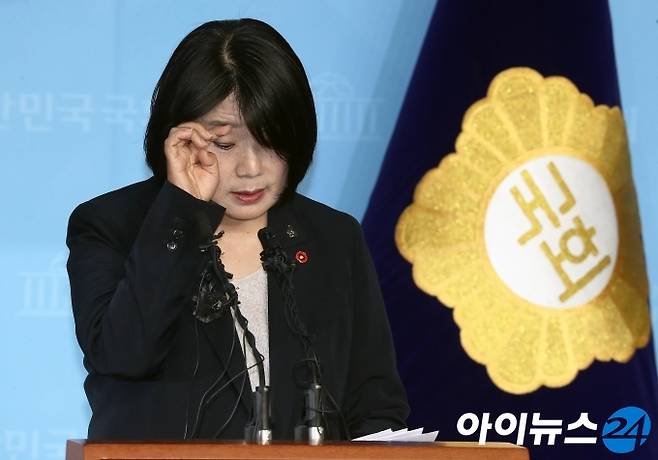 [아이뉴스24 조성우 기자] 윤미향 더불어민주당 당선인이 29일 오후 서울 여의도 국회 소통관에서 정의기억연대(정의연) 활동 기간에 불거진 부정 의혹 등에 대한 입장 발표를 하다 땀을 닦고 있다.
