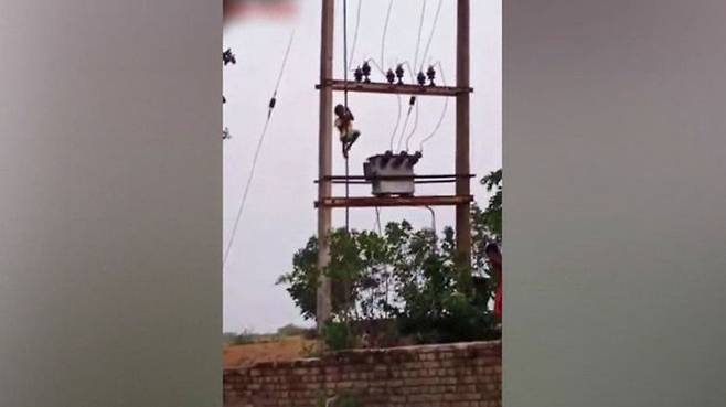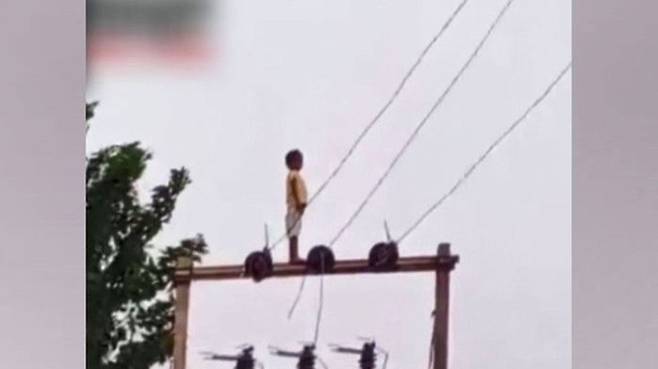인도에서는 어린아이가 전신주 꼭대기에 올라가있는 위험한 상황이 포착됐습니다.