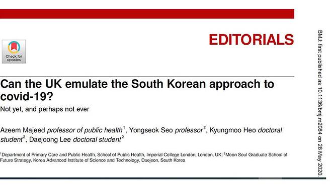 영국의학저널, '한국 · 영국 코로나19 대응 비교' 논문