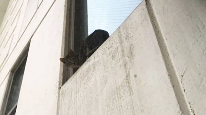 어제저녁 8시 반쯤 고양이 한 마리가 서울 암사동 한 아파트 21층 창틀 바깥쪽에 앉아 있다는 글이 한 커뮤니티에 올라왔습니다.