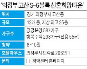 고산지구는 의정부 분양시장에서 인기가 높은 지역으로 꼽힌다. 이 단지 전용 55㎡형의 평균 분양가는 2억3900만~2억4100만원(3.3㎡당 1030만원) 수준이다. 분양 관계자는 “공공주택은 민간 단지 평균 분양가(3.3㎡당 1300만원)보다 저렴하다”며 “무주택 신혼부부에게는 내 집을 마련할 최적의 기회”라고 말했다. 지난달 의정부 관내 분양한 민간주택도 1순위에서 분양을 마쳤다.