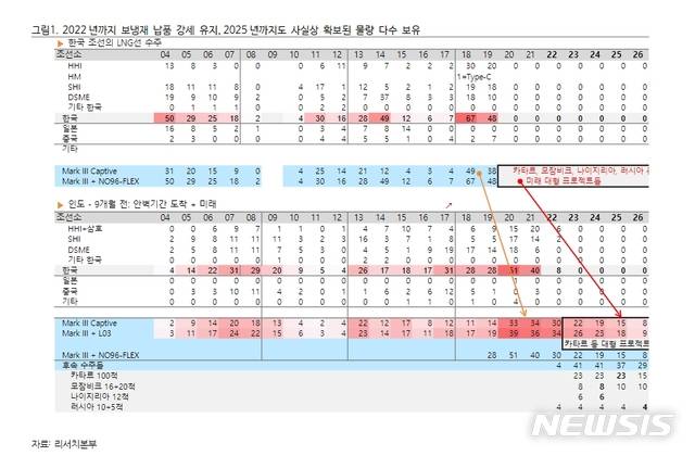 최광식 하이투자증권 연구원은 "이달 1일 카타르 LNG선 100척이 한국으로 왔으며, 막 자금 조달을 끝낸 모잠비크 16척과 삼성이 LOI를 보유 중인 러시아 10척, 그리고 액화 터미널 EPC 계약을 5월에 마친 나이지리아에서 12척이 기다리고 있다"고 설명했다.