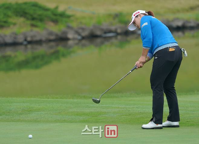 [이데일리 골프in 조원범 기자]3일 제주도 서귀포시에 위치한 롯데스카이힐 제주 컨트리클럽(파72ㅣ6,373야드)에서 '제10회 롯데 칸타타 여자오픈'(총상금 8억 원,우승상금 1억 6천만원)연습라운드가 열렸다.장하나가 18번홀에서 퍼트하고 있다.