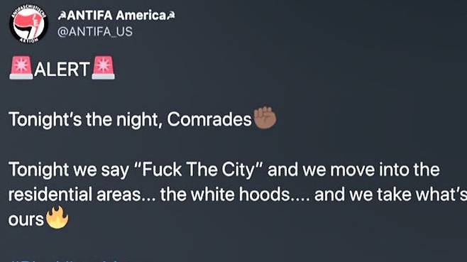 트위터 측의 확인 결과 '안티파' 계정은 백인우월주의 극우 단체가 만들어 안티파가 마치 시위를 주도하는 것처럼 조작한 것으로 드러났습니다.