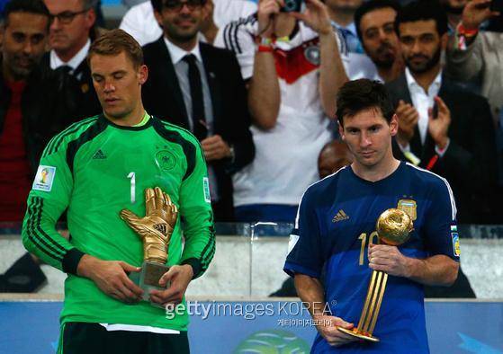 마지막 장면은 안타까움이 더 많이 묻어나는 장면이다. 바로 2014 브라질 월드컵 골든볼 수상이다. 메시의 아르헨티나는 결승까지 올랐으나 결승에서 독일에 0-1로 패배하며 준우승에 머물렀다. 월드컵 우승이 너무나 간절했던 메시였지만 독일을 넘지 못했다. 대회가 끝난 뒤 골든볼이 메시의 품에 안겼다. 하지만 메시는 크게 기뻐하지 않았다. 메시가 월드컵 우승 트로피를 지긋이 바라보는 모습이 오히려 더 화제가 됐다. 또 메시의 골든볼 수상은 논란을 일으켰다. 당시 제프 블래터 국제축구연맹(FIFA) 회장은 "메시가 수상자로 결정됐을 때 다소 놀랐다"고 말했고, 마라도나는 "공정하지 않았다"고 비판했다.