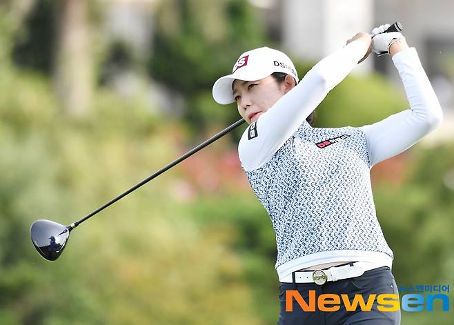 이날 배소현이 10번홀에서 티샷을 준비하고 있다.