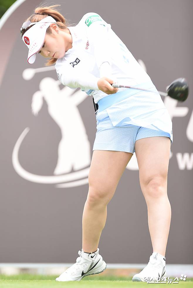 [엑스포츠뉴스 제주, 김한준 기자] 4일 제주특별자치도 서귀포시 롯데스카이힐 제주컨트리클럽(파72 / 6,373야드)에서 열린 '제10회 롯데 칸타타 여자오픈(총상금 8억원, 우승상금 1억 6천만원)' 1라운드 경기, 이소영(23, 롯데)이 1번홀 티샷을 날리고 있다.