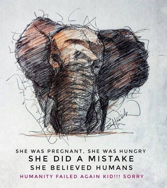 사연이 알려지자 온라인상에서는 충격 받고 분노한 시민들이 포스터와 그림으로 코끼리의 죽음을 애도하고 있습니다. 한 누리꾼은 "코끼리가 실수를 했다. 인간을 믿은 것이 실수였다"라며 사람들의 잔인함을 꼬집었습니다.