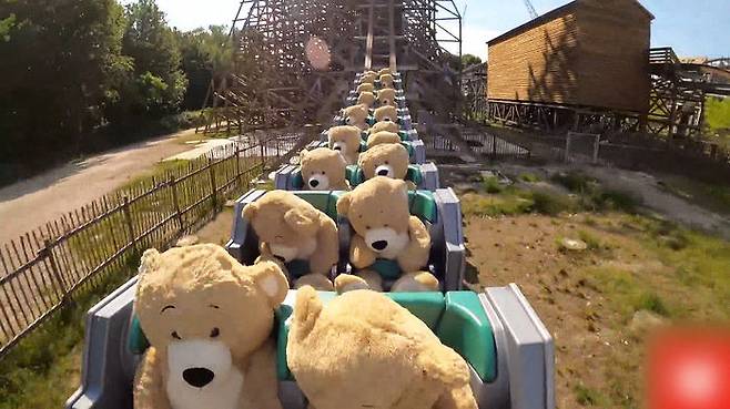 재개장하면 가장 타보고 싶은 놀이기구로 꼽혔던 롤러코스터에 이렇게 곰 인형 22개를 앉힌 것입니다.