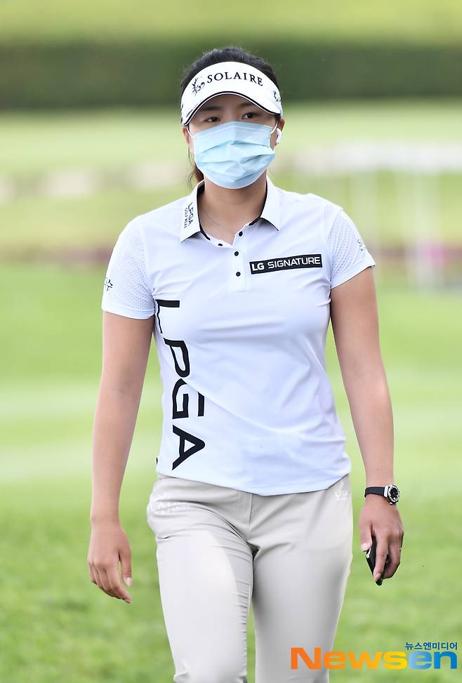 이날 고진영이 10번홀에서 티샷을 준비하고 있다.