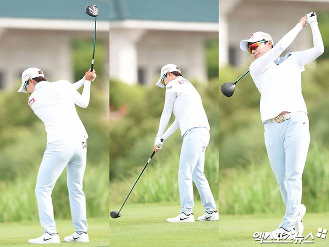 [엑스포츠뉴스 제주, 김한준 기자] 5일 제주특별자치도 서귀포시 롯데스카이힐 제주컨트리클럽(파72 / 6,373야드)에서 열린 '제10회 롯데 칸타타 여자오픈(총상금 8억원, 우승상금 1억 6천만원)' 2라운드 경기, 김효주가 10번홀에서 스윙 연습을 하고 있다.