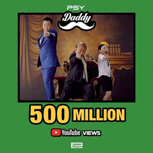 싸이는 6일 자신의 SNS를 통해 '대디' 유튜브 뮤직비디오 조회 5억뷰 돌파를 기념한 축전을 게재했다. 싸이의 얼굴을 한 할아버지와 어린이, 그리고 싸이의 모습이 유쾌하게 담겨 웃음을 더했다.