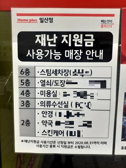 음식점은 점포마다 달라 4곳 중 2곳만 음식점에서 재난지원금 사용이 가능했는데, 이마저도 매장에 따라 달랐다. 이마트 화정점의 경우 전체 입점 음식점 8곳 중 2곳만 재난지원금 사용처였다.