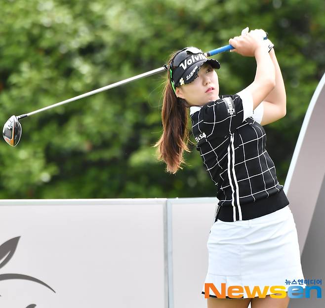 이날 조아연이 1번홀에서 티샷을 구사하고 있다.