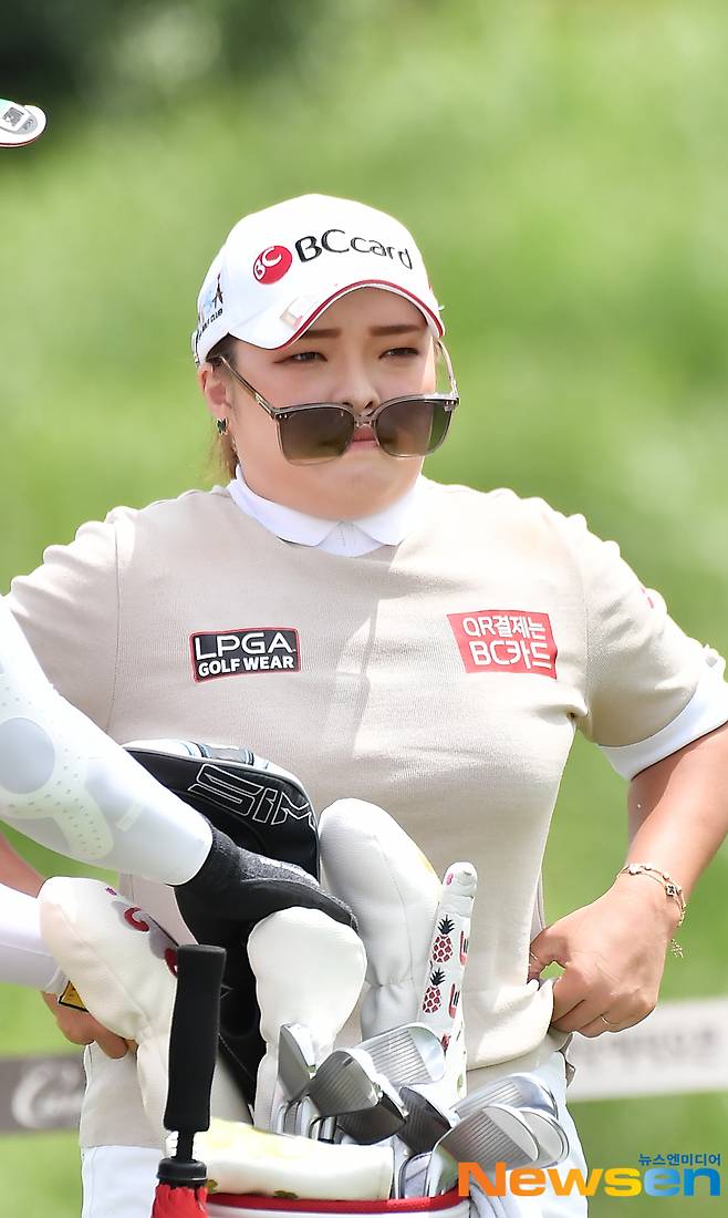이날 장하나가 1번홀에서 티샷을 준비하고 있다.