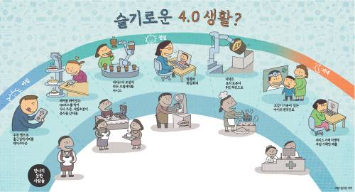 “기술이란 건 그냥 사물이죠. 그걸 활용하는 게 인간이고요. 우리 사회에는 효율성과 인간성이라는 두 가지 가치가 있는데, 효율성 관점에선 4차 산업혁명 쪽으로 빠르게 가야 하고, 인간성 관점에선 다 같이 복지를 하고 일자리를 창출해야죠. 하지만 이 둘이 정적인 게 아니에요. 기술이 발전하면 제도도 변해야 하고, 제도가 변하면 거기에 맞춰 기술도 변해야 합니다. 두 축이 적절히 보조하며 나아가야 합니다. 산업 발전뿐 아니라 인간성을 보호하기 위해서라도 변해야 할 때죠.”(이 교수)