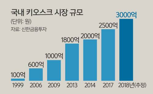 글로벌 시장조사업체 bbc리서치는 세계 대화형 키오스크 시장이 2015년 492억달러에서 2021년 835억달러로 성장할 것으로 전망했다. 우리나라의 경우에도 1999년 100억원이던 키오스크 시장 규모가 2009년 1000억원, 2014년 2000억원, 2018년 3000억원(신한투자금융 보고서)으로 늘어나는 추세다. 코로나19 이후 ‘언택트’ 경향이 심화하면서 이 같은 증가세를 더욱 빨라질 것으로 보인다.