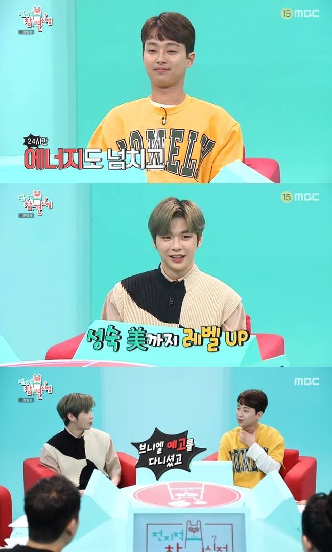 강다니엘은 “이찬원과 사진을 찍고 싶다. 어머니께서 팬이다”고 호감을 드러내 스튜디오 분위기를 훈훈하게 이끌었다. (사진=MBC ‘전지적 참견 시점’ 캡처)