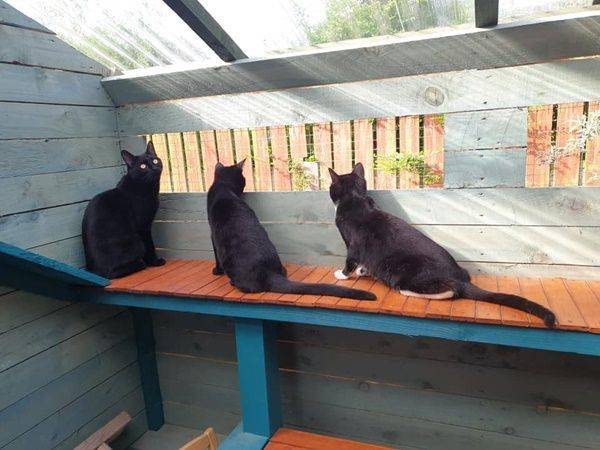 그렇게 어마어마한 규모와 정성을 자랑하는 야외 놀이터는 최근 1년 만에 완공됐습니다. 고양이 세 마리도 로체 씨의 기대에 부응하며 온종일 놀이터에서 놀고 낮잠 자며 마음에 들어 했습니다.