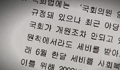 그 후에도 '일하는 국회'라는 이름으로 많은 개정안이 발의됐다가 사라졌습니다. 개정안의 요체는 이것. 여야 간 정쟁으로 인한 국회 공전을 막자는 겁니다. 미국산 소고기 파동으로 무려 82일 만에 개원한 제18대 국회 때 특히 여러 차례 발의됐습니다. 내용은 대동소이합니다. 출석하지 않는 의원들에게 세비 또는 특별 수당을 지급해선 안 된다는 것입니다.