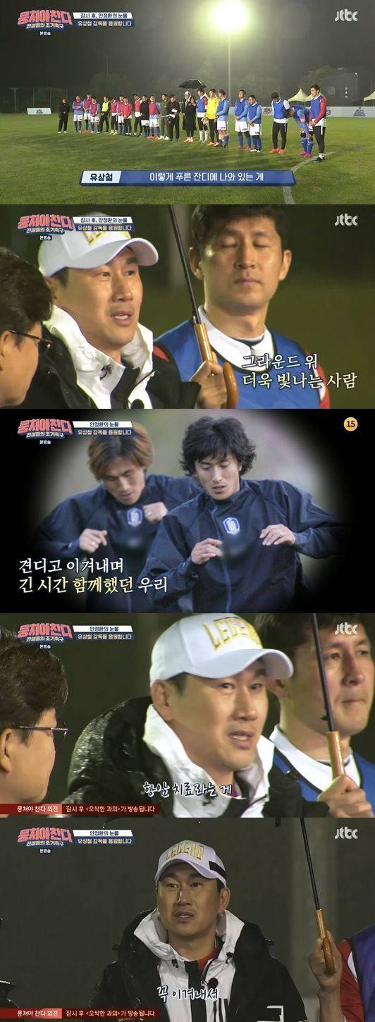 유상철은 지난해 11월 췌장암 말기 투병 중이라는 사실을 알리며 공식 활동을 중단했다. 그랬던 그는 6개월 만인 지난달 31일 '뭉쳐야 찬다'를 통해 건강한 근황을 공개했다. 이날 방송 역시 유상철이 출연, 어쩌다FC 멤버들은 물론 함께 국가대표 생활을 했던 동료들과 시간을 보냈다.
