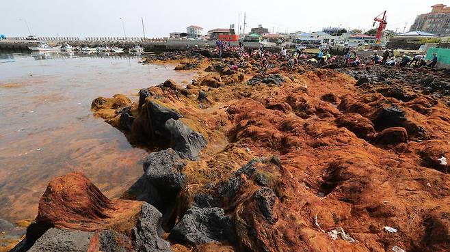 5년 이내 가장 많은 중국발 괭생이모자반이 최근 한 달간 제주 연안에 유입된 것으로 나타났습니다.