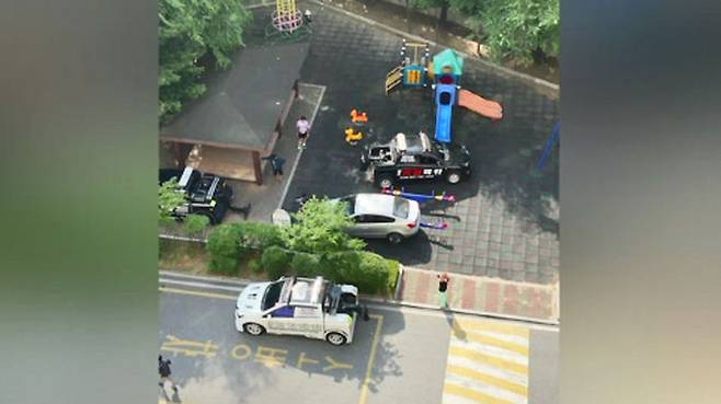 단지를 질주하던 승용차는 이 놀이터 안 정자 앞에 와서야 멈춰섰습니다.