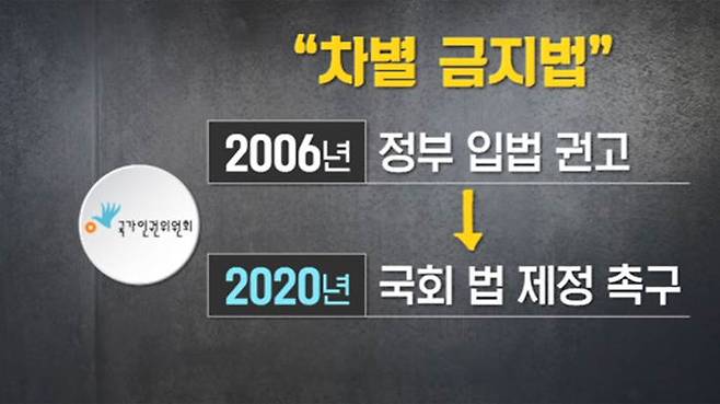 지난달 저희와 인터뷰를 했었던 성 소수자 겨울 씨의 이야기였습니다. 차별을 막아줄 법과 제도를 국회나 정부가 만들어달라는 내용이었습니다. 지난 2006년, 차별금지법 입법을 정부에 권고했던 국가인권위원회가 14년 만에 이번에는 국회에 법 제정을 촉구할 것으로 보입니다. 그런 내용이 담긴 인권위원회 문건을 저희가 단독 입수했습니다. 달라진 시대상에 맞춰 차별 금지 범위 넓히고 혐오 표현 역시 앞으로는 차별로 규정하자는 내용이 있습니다.