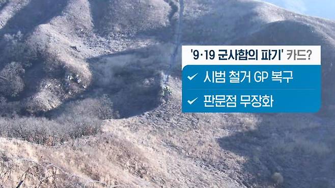 [홍민/통일연구원 북한연구실장 : GP(감시초소)를 일부 철거시켰는데, 이걸 원상복구하는 행동을 한다든가, 판문점에서의 무장 해제를 (합의했는데) 갑자기 무장하고 나타날 수 있고.]