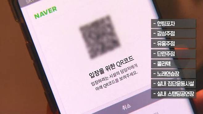 내일부터는 노래연습장이나 유흥시설 등 8대 고위험시설 8만여 곳에서 QR코드를 이용한 전자출입명부 작성이 의무화됩니다.