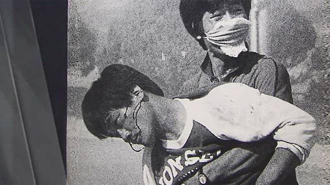 오늘 추모식에서는 최루탄에 맞은 이한열 열사를 동료가 부축하는 모습이 담긴 판화 조형물 '한열이를 살려내라' 제막식도 함께 열렸습니다.