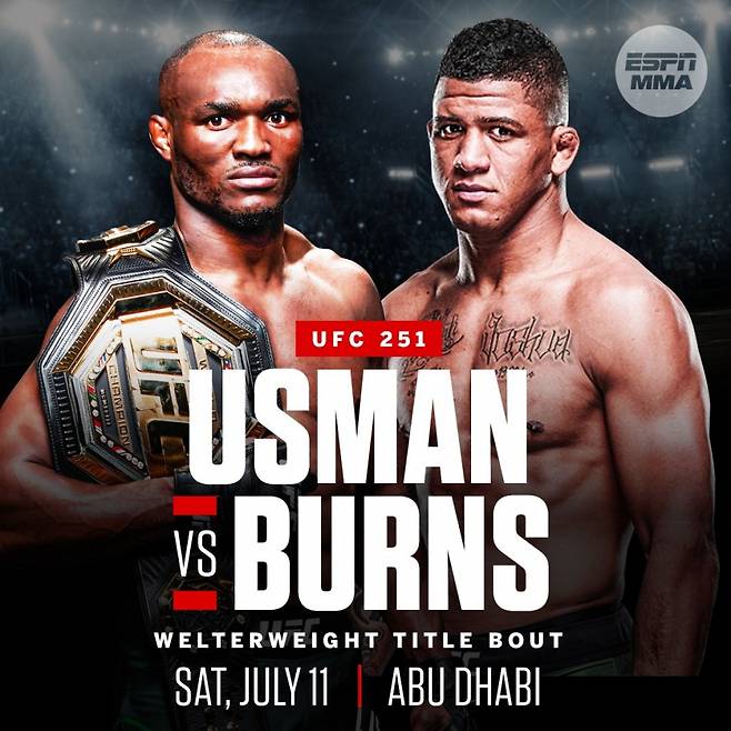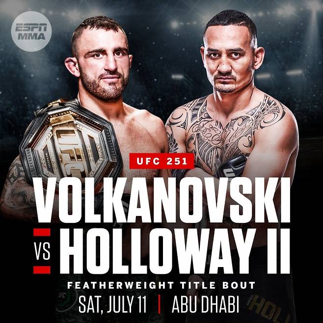 다음 달 11일 야스섬에서 열리는 UFC 251의 메인이벤트가 공개됐다. 타이틀전이 3경기나 포진됐다. 아래는 확정된 대진.