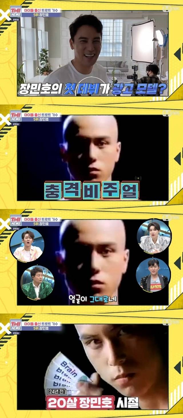 그와 함께 장민호가 스무살에 광고로 첫데뷔한 자료화면이 공개됐다. 무려 24년 전 과거 영상. 장도연은 “이 광고 기억나실 거다. 껌 광고다. 얼굴은 그대로다”고 말했고, 이어 공개된 충격적인 삭발 비주얼에 모두 깜짝 놀랐다.