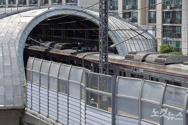 11일 오후 서울 노원구 지하철 4호선 상계역에서 전동차가 추돌사고로 멈춰서 있다. 이날 오전 10시 40분 쯤 지하철 4호선 상계역에서 오이도 방향으로 향하던 열차가 다른 열차와 추돌했다.