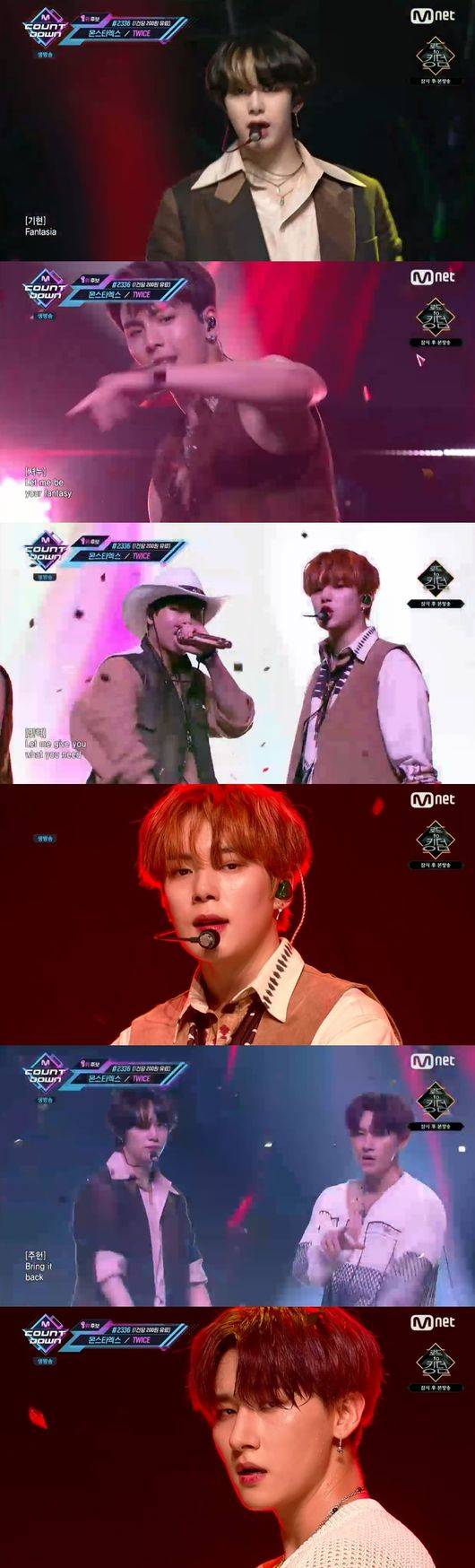 몬스타엑스는 몬스타엑스라서 가능한 칼군무와 물오를대로 오른 섹시미를 발산하며 열기를 뜨겁게 달궜다. 엔딩에서는 아이엠이 카메라를 향해 다양한 애교를 보여 팬들의 마음을 저격했다. 타이틀곡 '판타지아'는 몬스타엑스의 시그니처인 에너제틱함과 파워풀함을 극대화한 노래로, 앞을 막는 모든 것들을 부수고 나아가겠다는 패기를 불타오르는 잔치에 빗대어 표현한 가사가 특징이다.