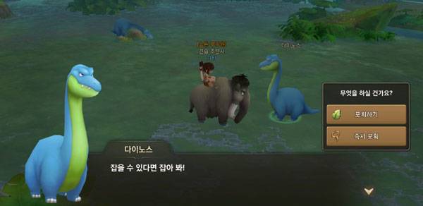 이렇게 다양한 종류의 펫을 획득하는 방법 중 하나는, 필드의 펫을 직접 포획하는 것이다. 필드를 거닐다 소장 욕구를 자극하는 펫을 발견했다면, 바로 포획을 시도할 수 있다. 바로 스톤에이지 월드만의 독특한 '수동 포획' 시스템을 통해서다.