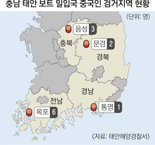 보트를 타고 충남 태안으로 밀입국한 중국인들이 전국으로 흩어져 은신해 경찰이 검거에 어려움을 겪고 있다. 군경이 해상에서 밀입국자를 원천 차단 못하고 육지 잠입을 번번이 허용하면서 경찰력 낭비와 국민 불안을 가중시키고 있다는 비판이 나온다.