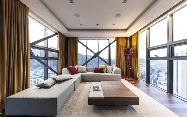 과천 푸르지오 써밋 1블록 주출입구와 가까운 118동에 스카이 라운지와 스카이 게스트하우스가 마련됐다. 바깥이 훤히 내다보이는 전용 엘리베이터를 타고 올라가면 26층에 스카이 라운지가 있다. 복층 형태로, 호텔 라운지처럼 인테리어를 꾸며놓았다. 통유리창으로 마감해 탁트인 전망을 감상할 수 있다. 라운지에 마련된 바에서 차를 주문해 마시거나 곳곳에 마련된 테이블에 앉아 지인들과 담소를 나누기 좋다.
