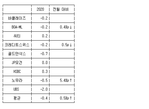 반면 BoA-ML은 0.2%에서 -0.2%로, 크레디트스위스는 0.3%에서 -0.2%로 낮춰잡았다.