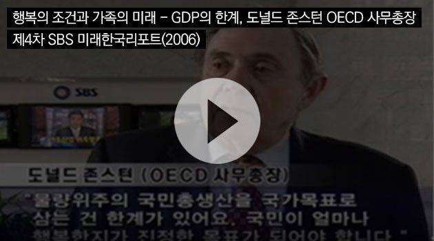 관련해 2006년 초 방한한 도널드 존스턴 당시 OECD 사무총장은 제4차 SBS 미래한국리포트와의 인터뷰에서 GNH(Gross National Happiness) 즉 ‘국민총행복지수를 개발하고 있다’고 밝힌 바 있습니다.