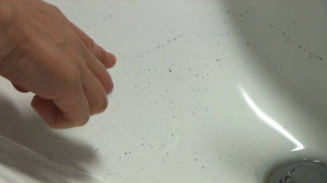 제보자 대부분은 주부들이었습니다. 주부들은 검은 가루를 보자 경악했습니다. 이 수돗물을 끓여 보리차를 만들고, 욕조에서는 아이들을 씻겼기 때문입니다. 6월 3일, 제보자 가정집에 직접 방문했습니다. 영상에서 본 대로 '검은 가루' 가 섞여 나왔습니다. 검은 가루는 시간이 지나자 세면대 가장자리에 달라붙어 띠를 형성할 정도로 많은 양이었습니다. 기름기가 있어서인지 달라붙은 검은 가루는 잘 지워지지도 않았습니다.