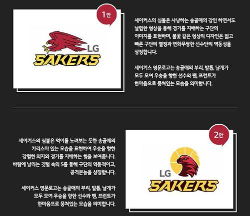 실제 LG가 팬 투표를 통해 공개한 로고 후보 2가지에는 새 출발, 도약의 의미가 담겨있다. 1안에서는 LG의 팀명이자 마스코트인 송골매를 역동적으로 표현했다. 또한 2안에서는 심볼 내에 스피드를 표현하는 ‘S’를 형상화하기도 했다. “조성원 감독님이 빠른 농구, 공격농구를 팀 컬러로 만들겠다고 말씀하신 것도 감안했다”라는 게 LG 관계자의 설명이다.
